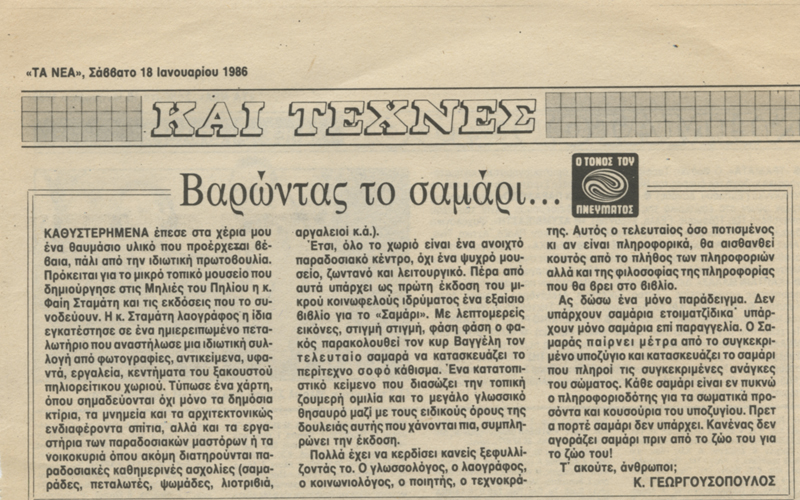 το σαμάρι – Μια ζωντανή πηλιορείτικη παράδοση