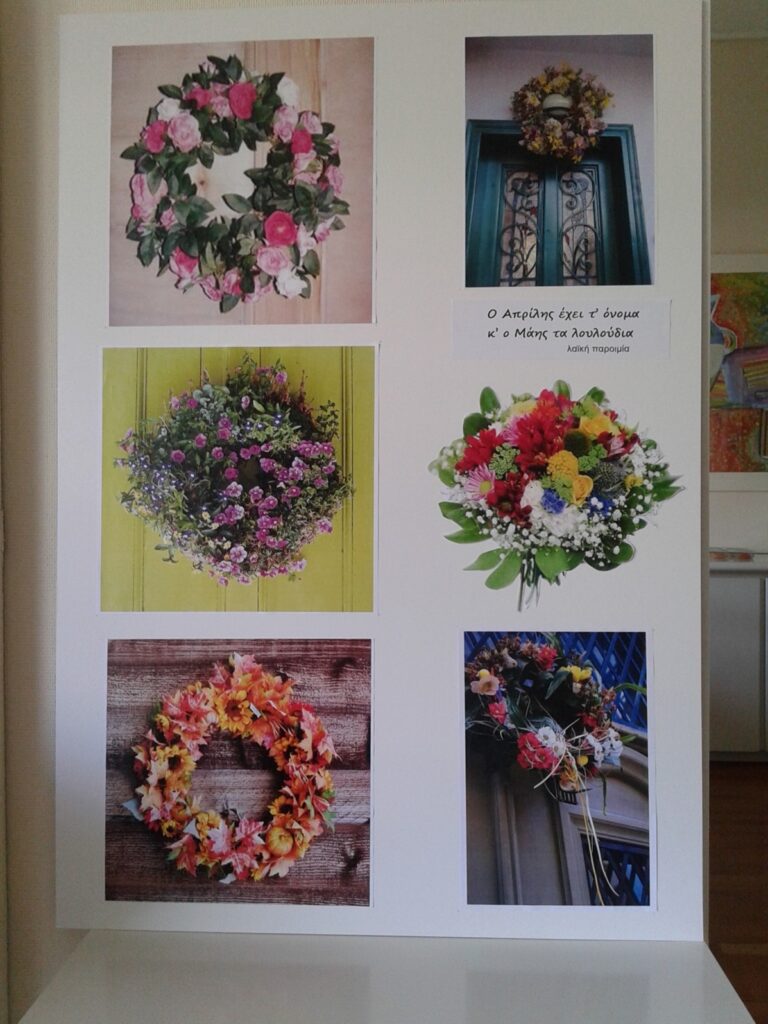 Το μαγιάτικο στεφάνι στην εξώπορτα του σπιτιού μεταφέρει τη ζωντάνια της φύσης που έξω οργιάζει. Παλιά έπλεκαν μαζί με λουλούδια πρασινάδες και κλαδιά καρποφόρων δέντρων που συμβόλιζαν τη γονιμότητα. Μαζί με μαντινάδες και ποιήματα μαθαίνουμε τη παράδοση του τόπου μας. Αυτό θέλησα να μεταφέρω στο κοινό που ερχόταν στο μουσείο.